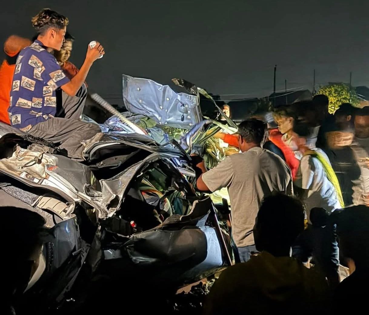 “Titik tabrak berada di KM 24 +/- 8/9 petak Gubug-Tegowanu, hingga mobil terpental dan terseret sejauh kurang lebih 50 meter dari lokasi,” ungkapnya.